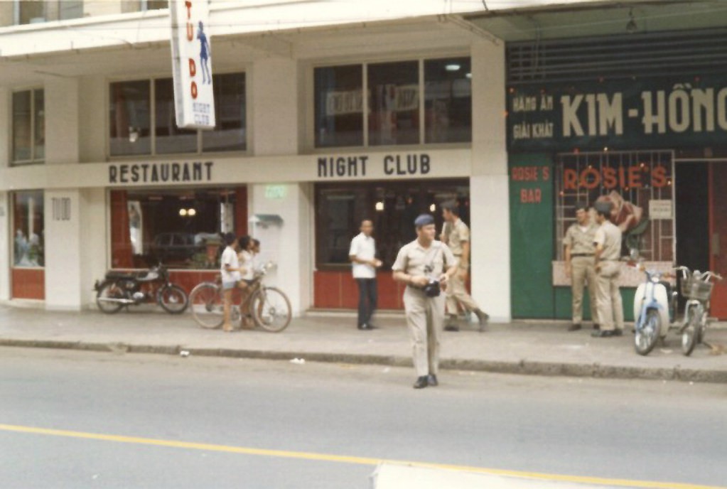 Các sĩ quan Mỹ đi lại bên ngoài vũ trường Tự Do. Ảnh: Chip Seiple Collection.