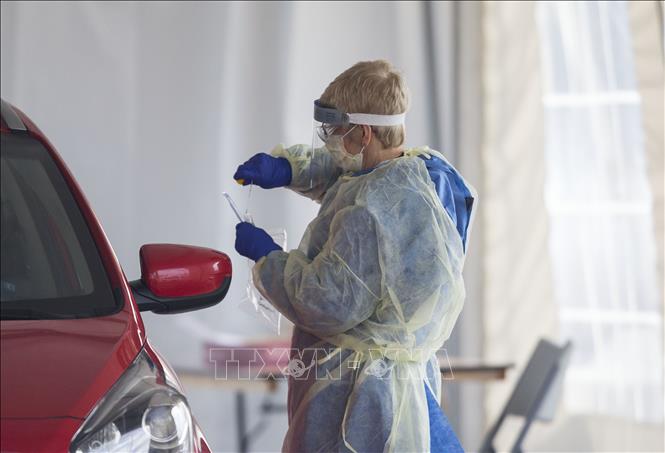 Nhân viên y tế lấy mẫu xét nghiệm COVID-19 tại Toronto, Canada ngày 9/4/2020. Ảnh: THX/TTXVN