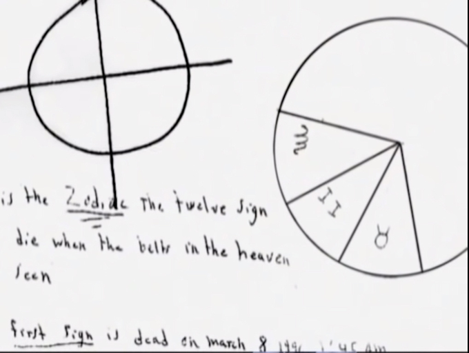 Ngày hôm sau, tờ báo địa phương nhận được lá thư đe dọa tương tự của hung thủ. Trong thư có h́nh vẽ ṿng tṛn hoàng đạo nhưng mới có ba cung xuất hiện, bên cạnh là h́nh vẽ nguệch ngoạc chưa được giải mă.