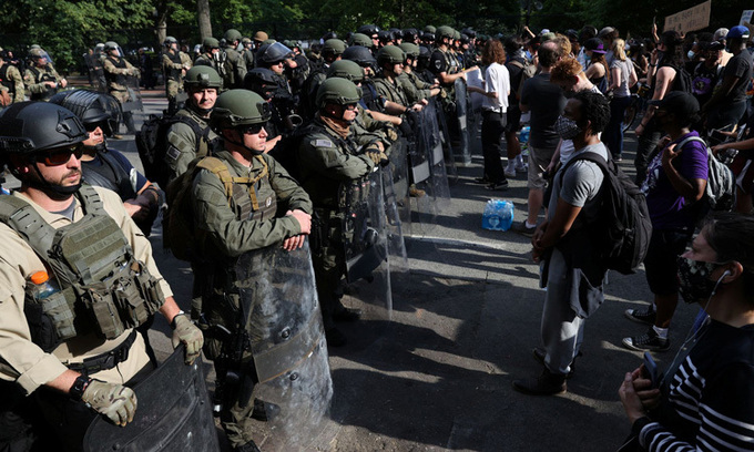 Nỗi lo ngại của Allen dường như trở thành hiện thực vào tối 3/6, khi lực lượng đối phó biểu tình tại thủ đô Washington không còn là cảnh sát hay mật vụ, mà là lính Vệ binh Quốc gia mặc đồ ngụy trang, được triển khai trên đường Số 16 gần Nhà Trắng. Dù chỉ là lực lượng quân sự dự bị của các lực lượng vũ trang Mỹ, họ đều giống nhau trong mắt người biểu tình và bị chửi rủa, lăng mạ.