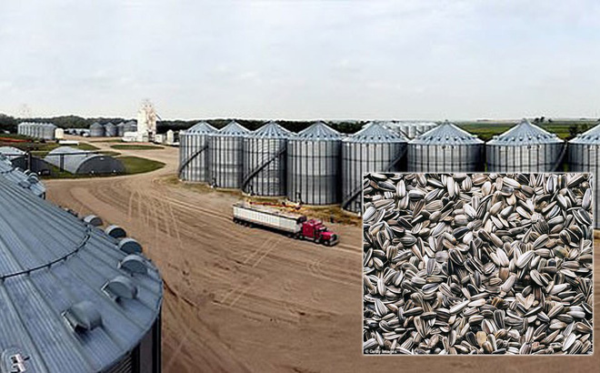Tại các trang trại, hạt hướng dương thường được bảo quản trong các silo khổng lồ sau khi thu hoạch.