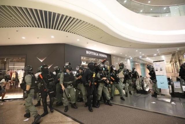 Cảnh sát đảm bảo an ninh tại Hong Kong trong bối cảnh xảy ra biểu tình phản đối luật an ninh mới (Ảnh: SCMP)
