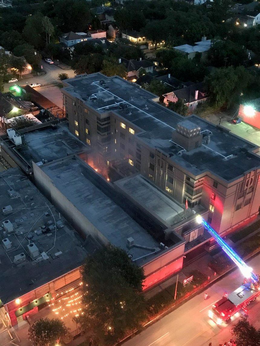 H́nh ảnh cho thấy lính cứu hóa đừng bên ngoài Tổng lănh sự quán Trung Quốc tại Houston tối 21/7. Ảnh: WSJ.