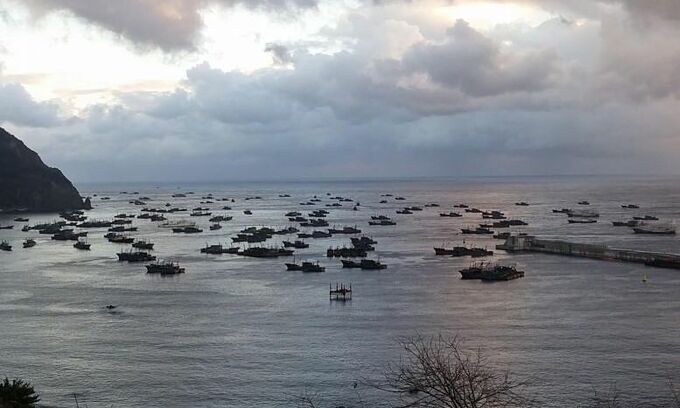 Một bức ảnh chụp tháng 12/2016 cho thấy các tàu cá Trung Quốc neo đậu ở cảng Sadong, đảo Ulleung-do, Hàn Quốc. Ảnh: AFP.