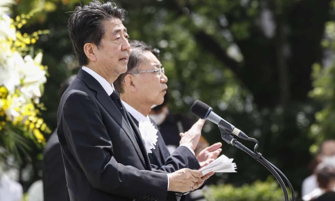 Thủ tướng Nhật Bản Shinzo Abe trong lễ tưởng niệm ở Nagasaki. Ảnh: Guardian.