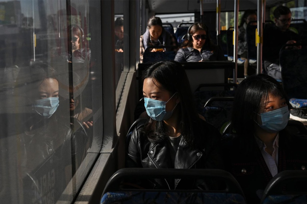 Lan Zhang and Elma Song, hai sinh viên Trung Quốc đang theo học thạc sĩ tại Đại học Sydney, sử dụng xe buýt đi mua sắm. Nhiều người cố gắng ở lại mặc dù chính phủ của Thủ tướng Scott Morrison cho biết sinh viên nước ngoài sẽ không được nhận trợ cấp của chính phủ.