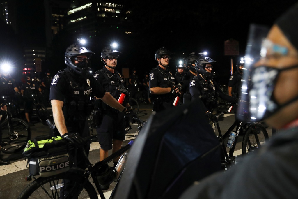 Biểu tình diễn ra tại North Carolina ngay đêm đầu tiên bang này tổ chức Đại hội Toàn quốc đảng Cộng hòa. Ảnh: Reuters.Thông điệp vẫn nhắm vào nỗi sợ