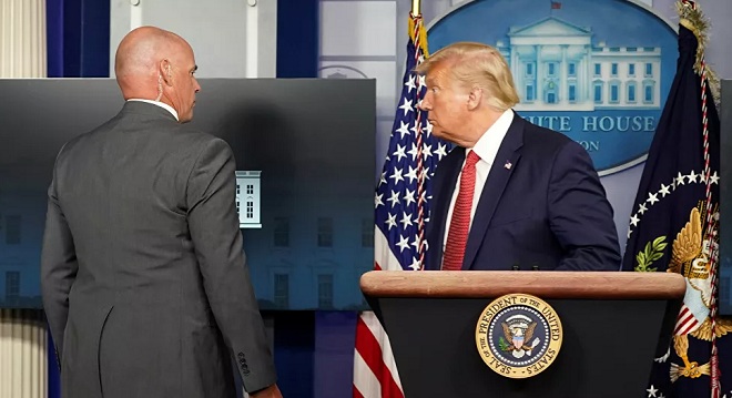 Ông Trump sơ tán khỏi pḥng họp báo ở Nhà Trắng hôm 10.8.