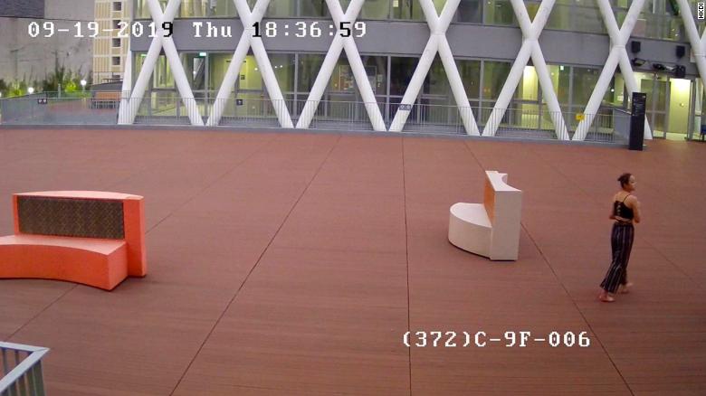 Trần xuất hiện trong các cảnh quay giám sát của trường vào ngày 19/9/2019, cởi giày và đi bộ trong khuôn viên. Ảnh: HKDI.