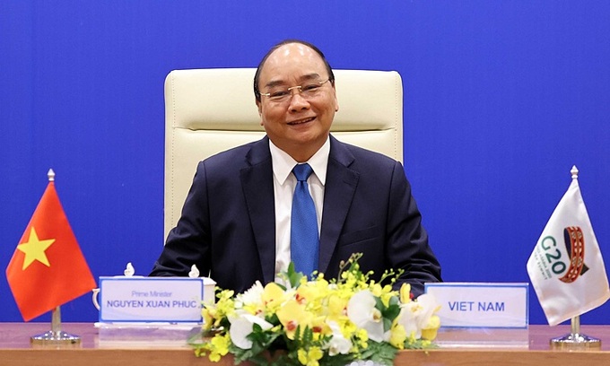 Thủ tướng Nguyễn Xuân Phúc cùng lãnh đạo cấp cao các nước hôm 21/11 tham dự phiên thảo luận đầu tiên thuộc khuôn khổ Hội nghị thượng đỉnh G20 với chủ đề "Vượt qua đại dịch, phục hồi tăng trưởng và việc làm", theo thông cáo của Bộ Ngoại giao.Thủ tướng nhấn mạnh cần tăng cường phối hợp chính sách toàn cầu, đoàn kết hành động và đề cao hợp tác đa phương để đẩy lùi dịch Covid-19. Thủ tướng khẳng định Việt Nam trên cương vị Chủ tịch ASEAN 2020 đã cùng các nước ASEAN và đối tác đề cao tinh thần "gắn kết và chủ động thích ứng", thực hiện mạnh mẽ các biện pháp ứng phó Covid-19, phục hồi kinh tế, duy trì đà hợp tác xây dựng Cộng đồng ASEAN 2025.