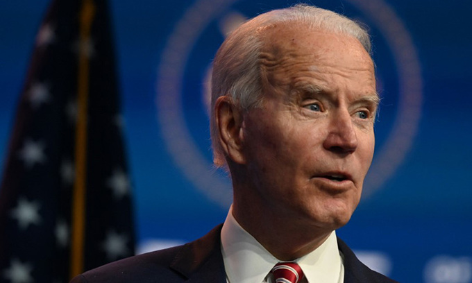 Tổng thống đắc cử Mỹ Joe Biden tại cuộc họp báo ở Delaware hôm 16/11. Ảnh: AFP.