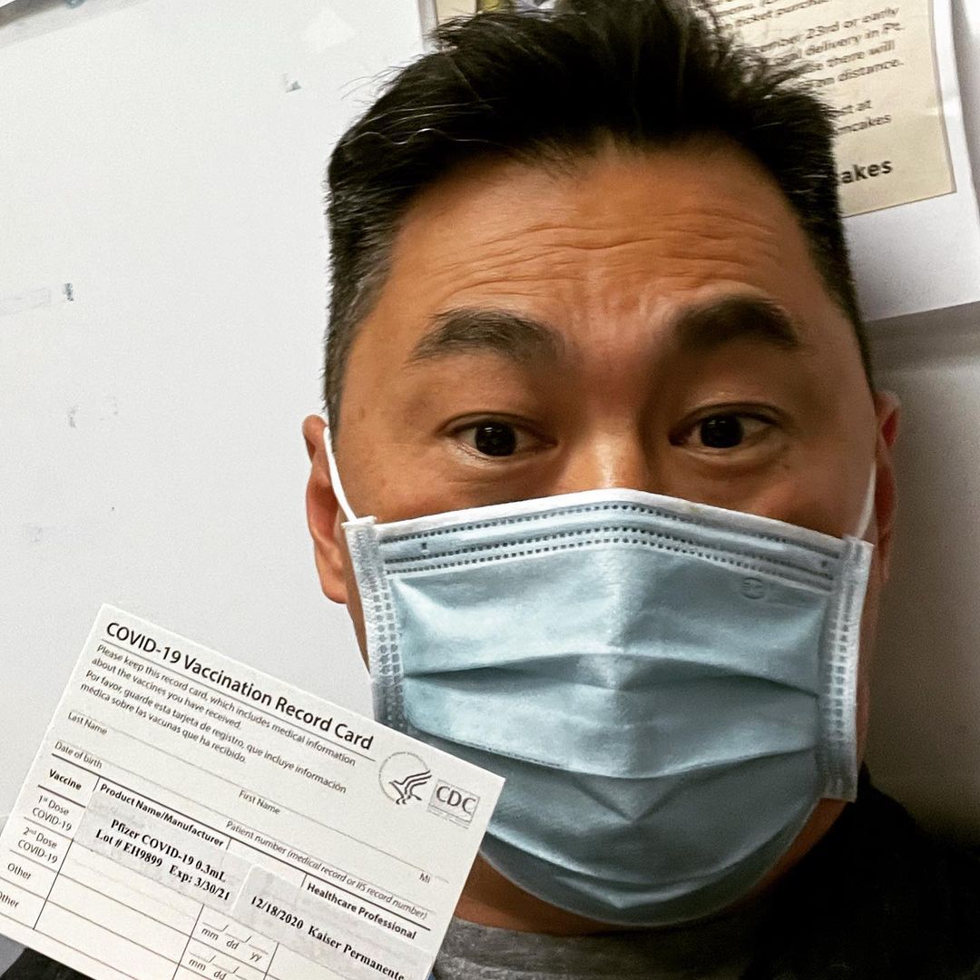 Ông Matthew W. cùng giấy chứng nhận đã tiêm vắc xin Covid-19. Ảnh: Instagram