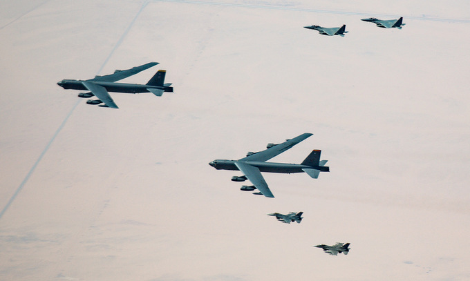 Bộ tư lệnh Trung tâm (CENTCOM) quân đội Mỹ hôm 9/1 thông báo một biên đội hai oanh tạc cơ chiến lược B-52 tuần trước được triển khai làm nhiệm vụ tại Trung Đông. Hai chiếc B-52 này đã lập đội hình với tiêm kích F-16 Mỹ và F-15 Arab Saudi trong quá trình tuần tra ở khu vực.