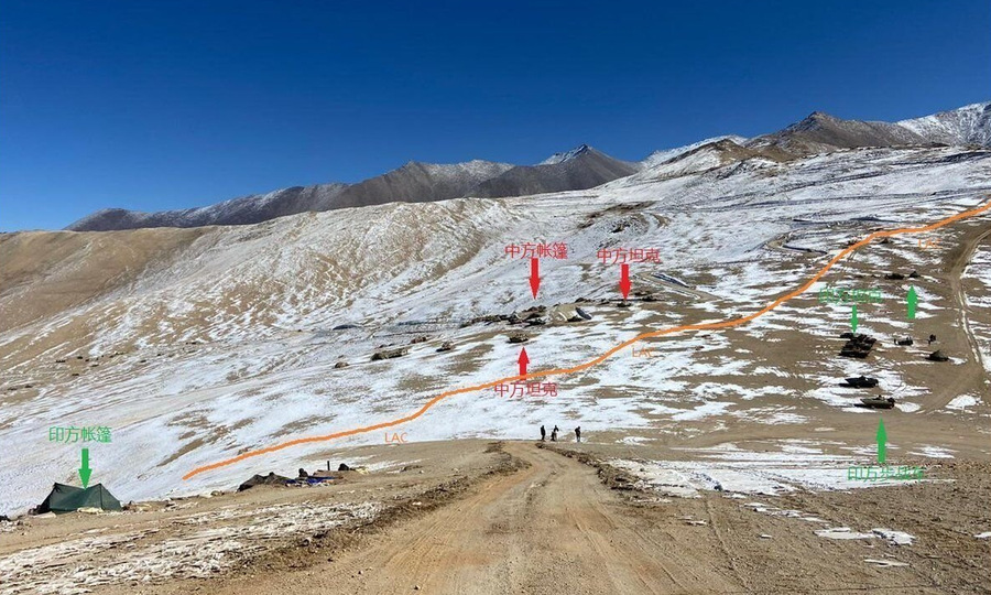 Theo ảnh vệ tinh, phía Ấn Độ dàn hàng bằng một loạt thiết giáp BMP-2, trong khi Trung Quốc sử dụng xe tăng hạng nhẹ Type-15.