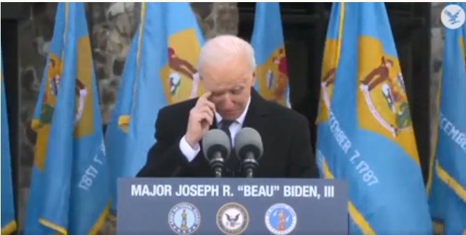 Trong bài phát biểu tạm biệt bang Delaware,ông Biden đã bật khóc khi gửi lời cảm ơn người dân quê hương và tưởng nhớ về con trai quá cố Beau.