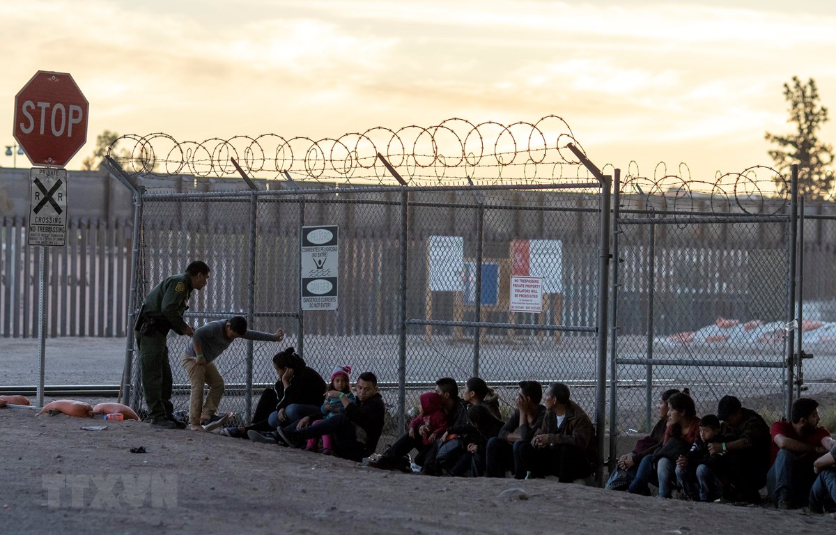 Lực lượng biên phòng Mỹ bắt giữ một nhóm người di cư gần Cầu quốc tế Paso Del Norte, nối giữa các thành phố biên giới Mỹ và Mexico ngày 18/4/2019.