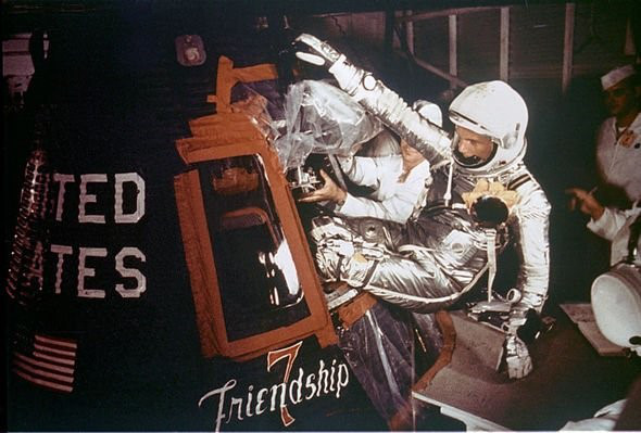 Phi hành gia John Glenn của Project Mercury tạo dáng trong khoang ngủ
