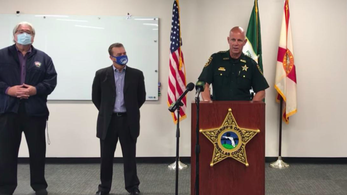 Bob Gualtieri, cảnh sát trưởng hạt Pinellas, bang Florida, (phải) trong cuộc họp báo về sự việc hôm 8/2. Ảnh: Pinellas County Sheriff's Office.