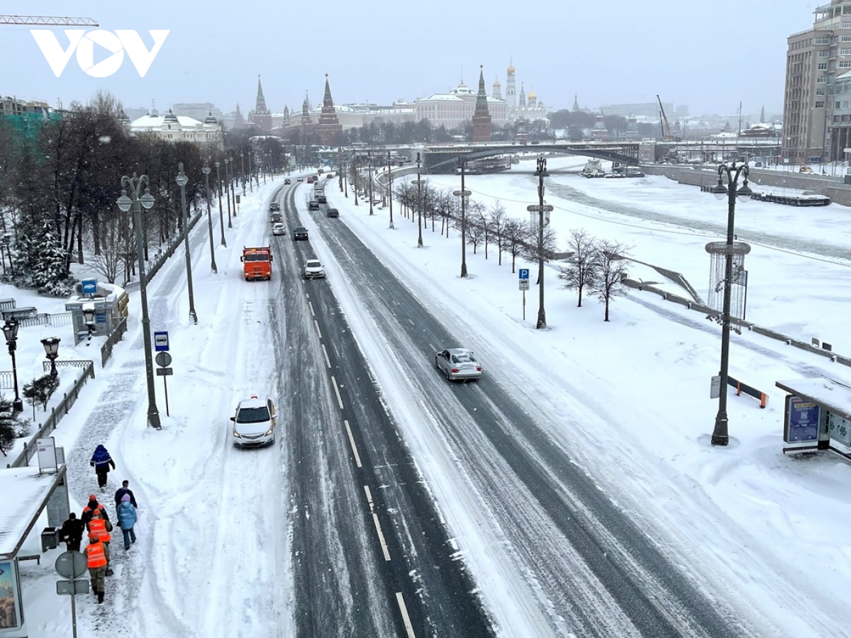 Đường phố ở thủ đô Matxcơva ngập trong tuyết