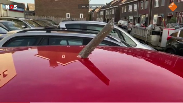Mảnh vỡ từ chiếc Boeing xuyên thủng xe hơi (Ảnh: Twitter)