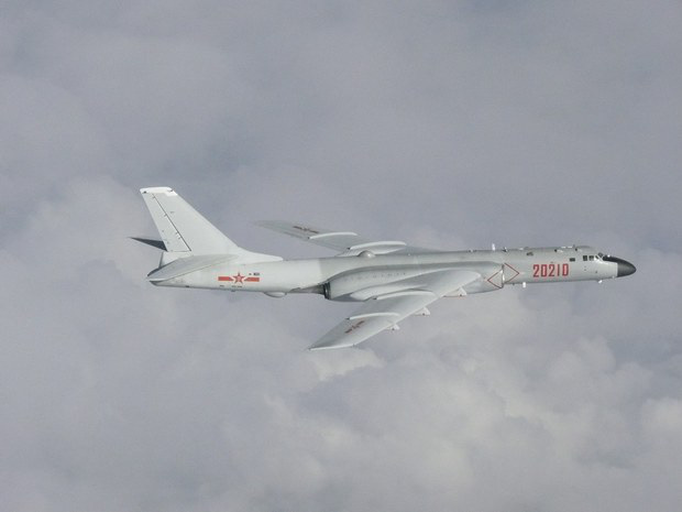 Một máy bay ném bom H-6 của Trung Quốc bay trên Biển Hoa Đông