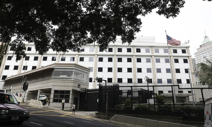 Bên ngoài lãnh sự quán Mỹ ở Hong Kong. Ảnh: SCMP.