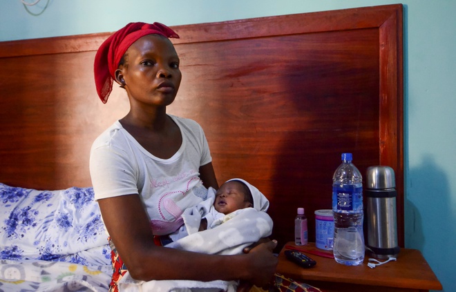 Fato Abdula Ali cùng bé trai cô sinh ra trên đường chạy trốn phiến quân. Ảnh: Reuters.