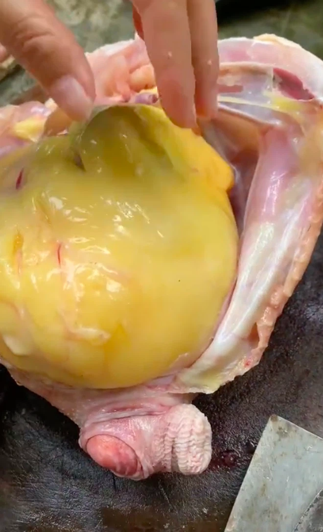 Dân mạng chưa hết hồn với khối mỡ trong bụng con gà, cô nàng đã quyết định quay cận cảnh rạch khối đó ra, và bên trong mới thực sự bất ngờ.