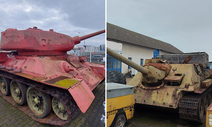 Người đàn ông mang xe tăng màu hồng tới nộp cho cảnh sát