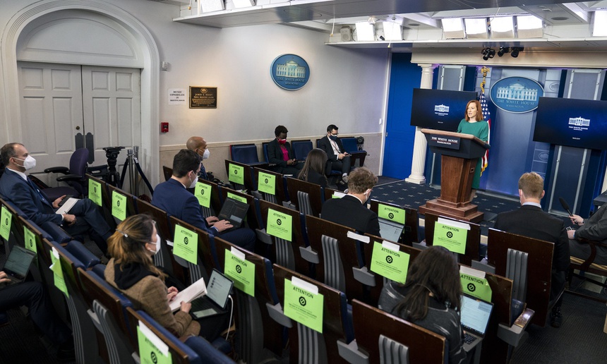 Những tuần gần đây, các thành viên nhóm báo chí Nhà Trắng đã 4 lần chuyển tới thư ký báo chí Jen Psaki câu hỏi từ một người tự xưng là phóng viên nhưng không thể tới dự họp báo vì các quy định phòng chống dịch Covid-19. Phóng viên này có tên Kacey Montagu.