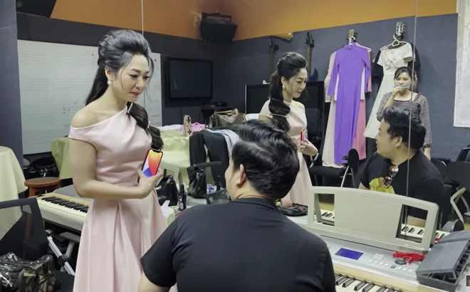Em quay nãy giờ cũng được 3 bài rồi, giờ quay một bài với anh thôi là xong đấy. Bây giờ phải khẩn trương lên để em còn đi về, còn nhiều việc nữa.".