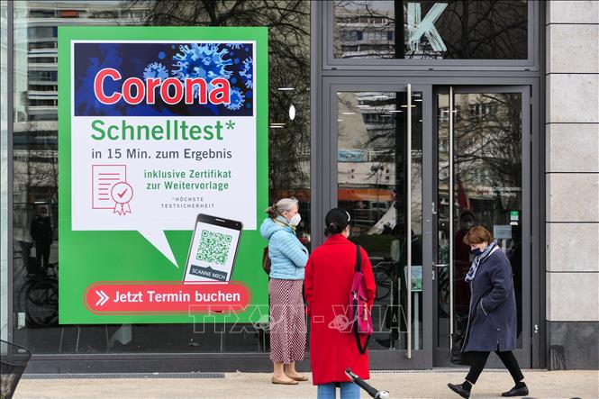 Người dân xếp hàng chờ xét nghiệm COVID-19 tại Berlin, Đức, ngày 9/4/2021. Ảnh minh họa: THX/TTXVN