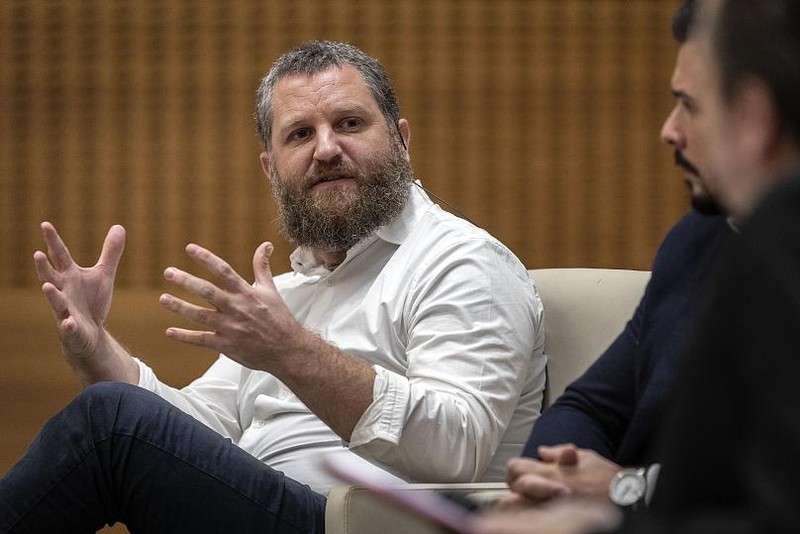 Nhà báo David Beriain đang phát biểu tại Pamplona năm 2019, ảnh được cung cấp bởi Diario de Navarra