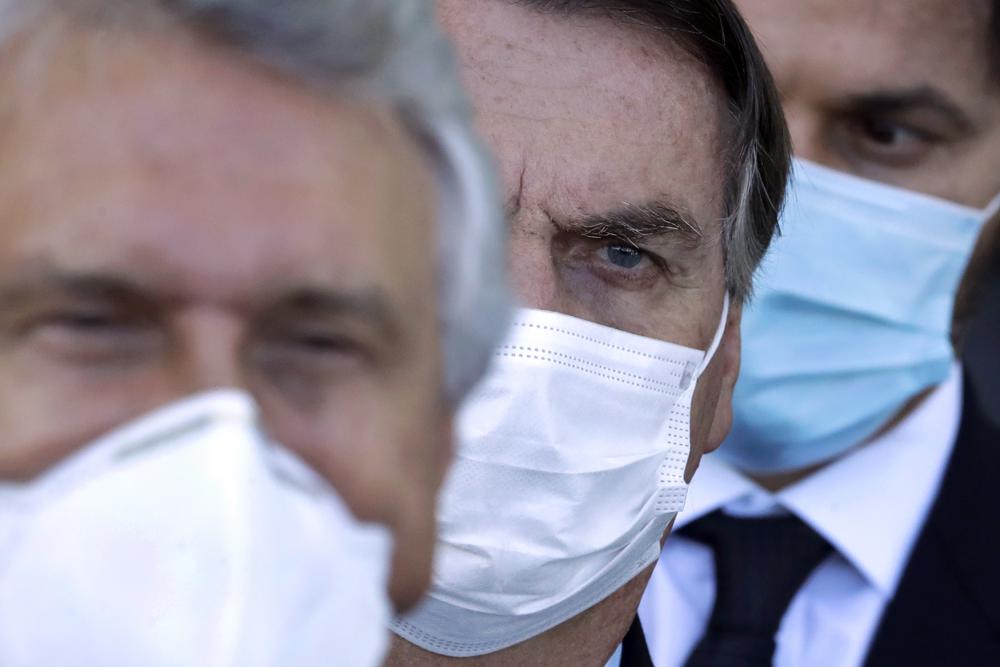 Tổng thống Brazil Jair Bolsonaro (giữa) khi đến dự một cuộc họp báo ở thủ đô Brasilia. Ảnh: AP