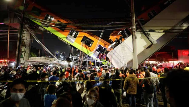 Vụ việc trên xảy ra khoảng 22h30 ngày 3/5, theo Reuters. Hình ảnh trên các kênh truyền hình Mexico và trên mạng xã hội cho thấy các toa tàu điện đè lên các ô tô bên dưới, sau khi đoạn cầu vượt trên cao mà tàu này đi ngang qua sập xuống.