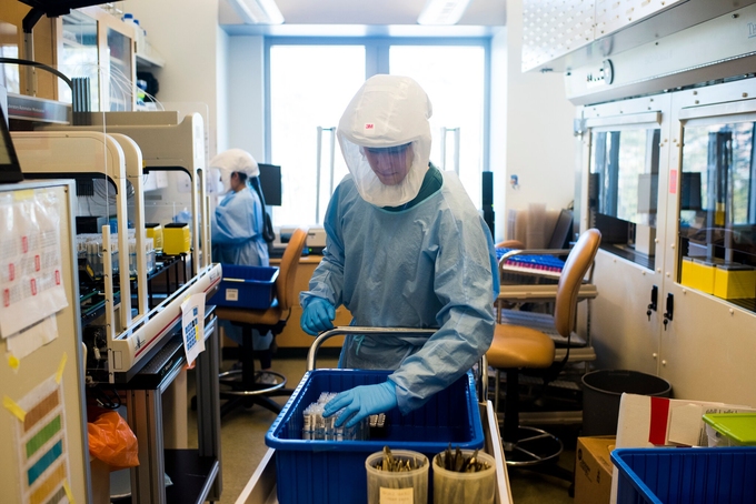 Nhân viên y tế chuẩn bị các mẫu xét nghiệm để giải trình tự gene tại Đại học Duke. Ảnh: NYTimes.