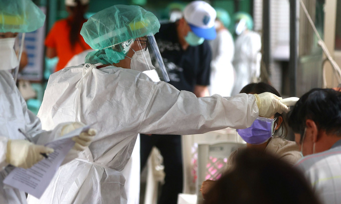 Nhân viên y tế tại một điểm xét nghiệm ở Đài Bắc hôm 17/5. Ảnh: Reuters.