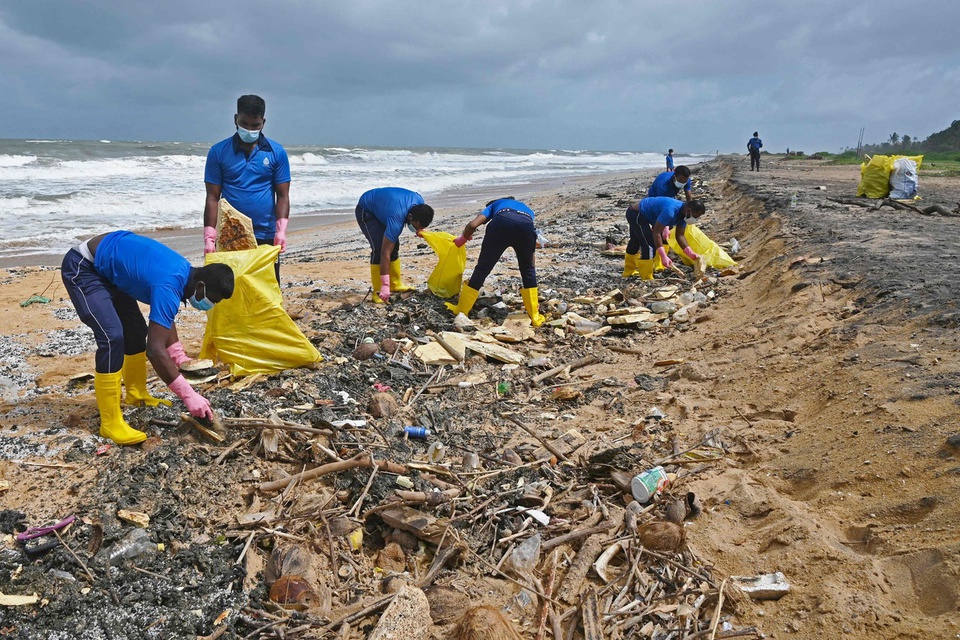 Bãi biển này nổi tiếng với các loài động vật như cua và tôm, với nhiều địa điểm thu hút khách du lịch. "Đây có lẽ là sự cố gây ô nhiễm bãi biển tồi tệ nhất trong lịch sử của chúng tôi", Dharshani Lahandapura, giám đốc Cơ quan Bảo vệ Môi trường biển Sri Lanka (MEPA), cho biết. Ảnh: AFP.