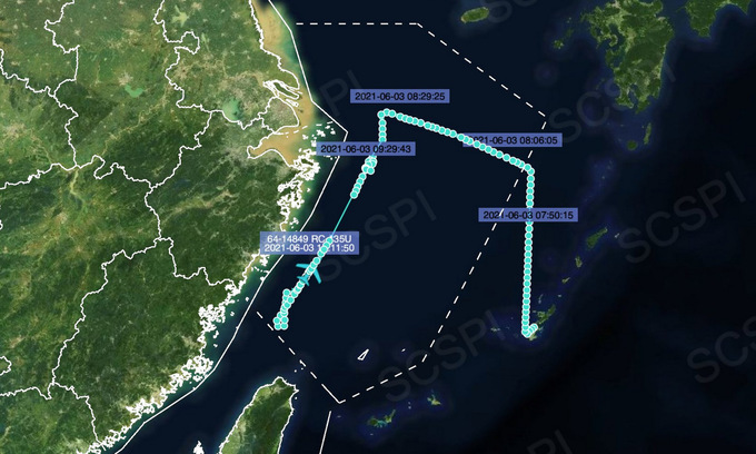 Đường bay của chiếc RC-135U hôm 3/6. Ảnh: Twitter/SCS_PI.