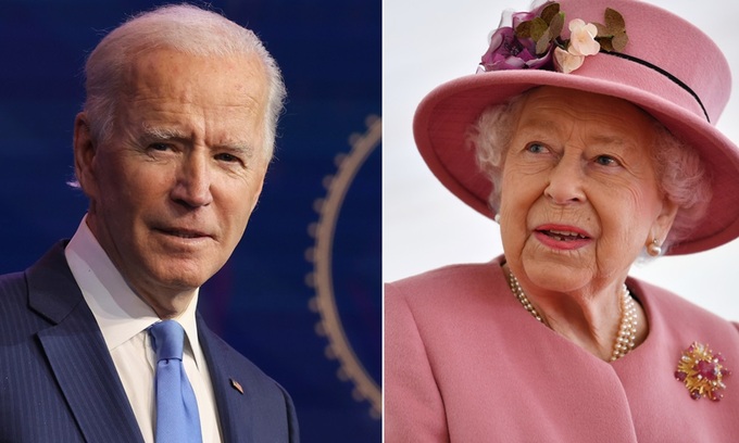 Tổng thống Mỹ Joe Biden và Nữ hoàng Anh Elizabeth. Ảnh: AP.