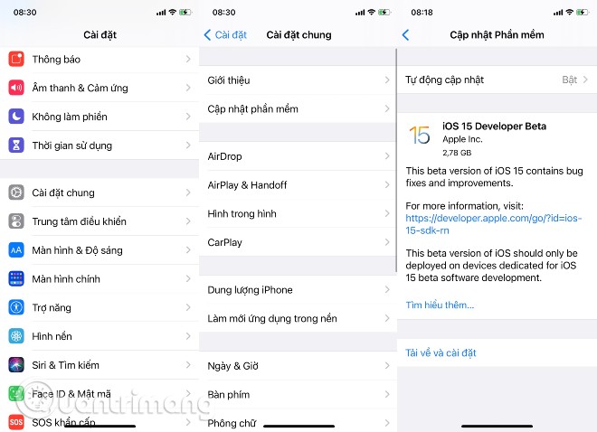 Nhờ cấu hình của Apple, bạn có thể tải xuống iOS beta trực tiếp trên iPhone của mình mà không cần máy Mac! Hiện tại, cấu hình iOS 15 beta chưa được Apple chia sẻ cho tất cả người dùng, chỉ những nhà phát triển có tài khoản mới được truy cập. Tuy nhiên, Quantrimang đã tìm được một cấu hình đáng tin cậy để các bạn có thể tải về và cài đặt iOS 15 beta.