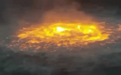 Truyền thông và cư dân mạng đã nhanh chóng chia sẻ những video về vụ việc cho thấy một đám cháy lớn trên mặt biển giống như một quả cầu lửa xoay tròn.