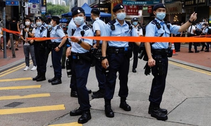 Cảnh sát Hong Kong thực hiện nhiệm vụ hôm 1/7. Ảnh: Reuters.