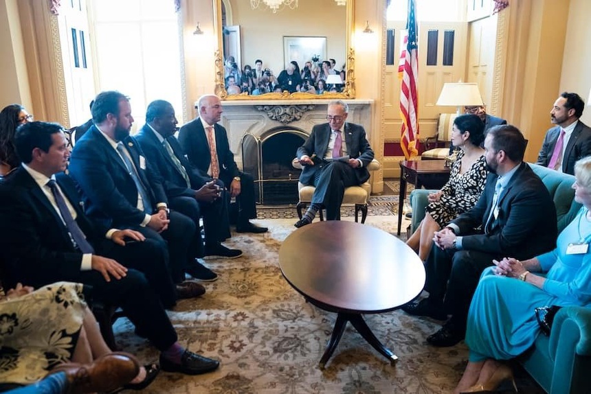 Nhóm nghị sĩ Texsa làm việc với Thượng nghị sĩ Charles Schumer. Ảnh: Washington Post.