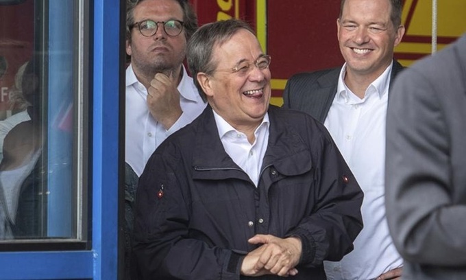 Laschet, ứng cử viên kế nhiệm Thủ tướng Angela Merkel, trước đó cùng ngày tháp tùng Tổng thống Frank-Walter Steinmeier đến thăm thị trấn Erfstadt, nơi bị ảnh hưởng nặng nề bởi trận lũ lụt lịch sử đang tàn phá Đức và nhiều phần của châu Âu.