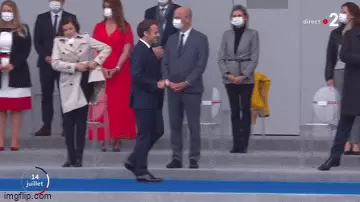Vào ngày 14/7, vợ chồng Tổng thống Pháp và các vị khách mời cấp cao đã cùng có mặt trong cuộc diễu binh truyền thống mừng Quốc khánh. Đây cũng là cuộc diễu binh cuối cùng trong nhiệm kỳ Tổng thống của ông Emmanuel Macron.