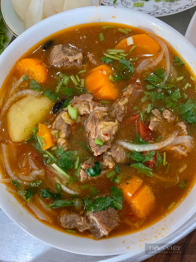 Món bò sốt vang ăn nóng, chấm bánh mì hoặc kèm bún rất ngon.