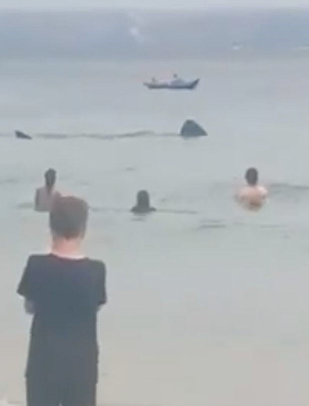 Đám đông đứng lặng người khi chứng kiến con cá mập xuất hiện. Ảnh: Tiktok