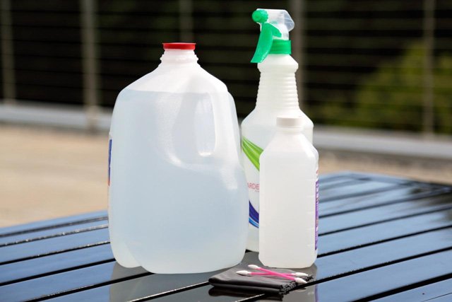 Nếu không có bình xịt, bạn có thể nhúng khăn vào thẳng dung dịch và vắt nước để khăn chỉ còn ẩm rồi lau.