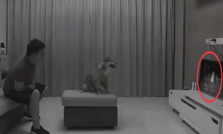 Chó cưng 'hồn vía lên mây' vì bị dọa ma. Đang tập trung cao độ xem phim ma, chú chó giật bắn người khi bất ngờ bị chủ dọa.